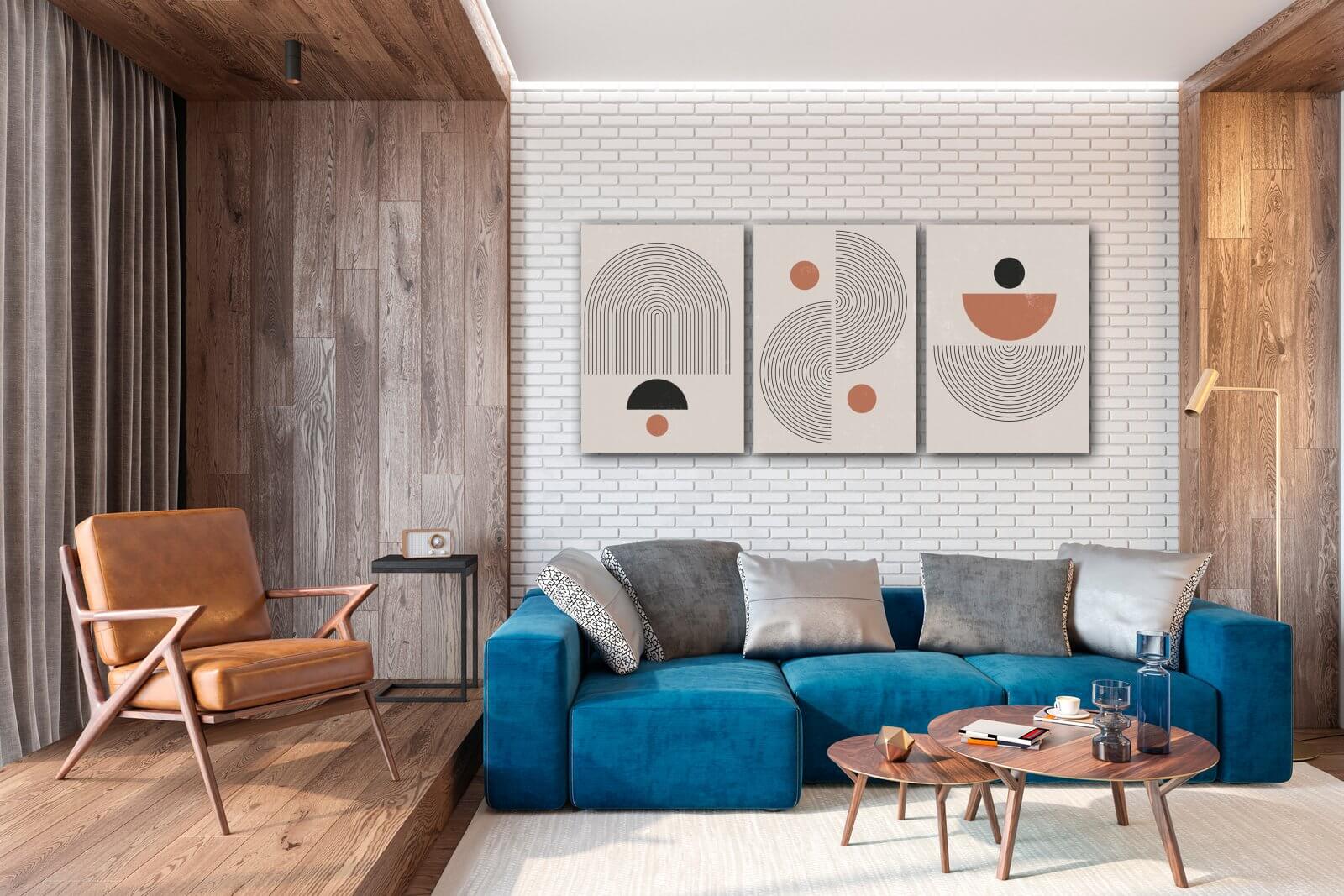 Căutați un tablou pentru a înfrumuseța și a face mai primitoare locuința dvs.? Atunci sunteți în locul potrivit! Un tablou modern de design pe perete cu motivul Set of abstract, de dimensiunea 150 x 70 cm (3-piese), va face interiorul dvs. mai confortabil și va transforma APARTAMENTUL dvs. într-o CASĂ. Știați că decorațiunile și tablourile alese corespunzător în interior au un impact pozitiv asupra percepției și stării dvs. de bine?